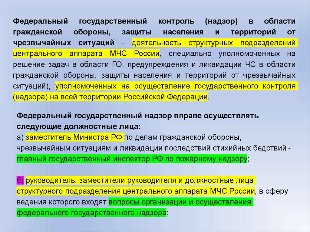 надзоре в области гражданской обороны").