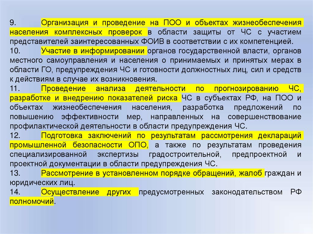 в области защиты населения и территорий от чрезвычайных ситуаций.