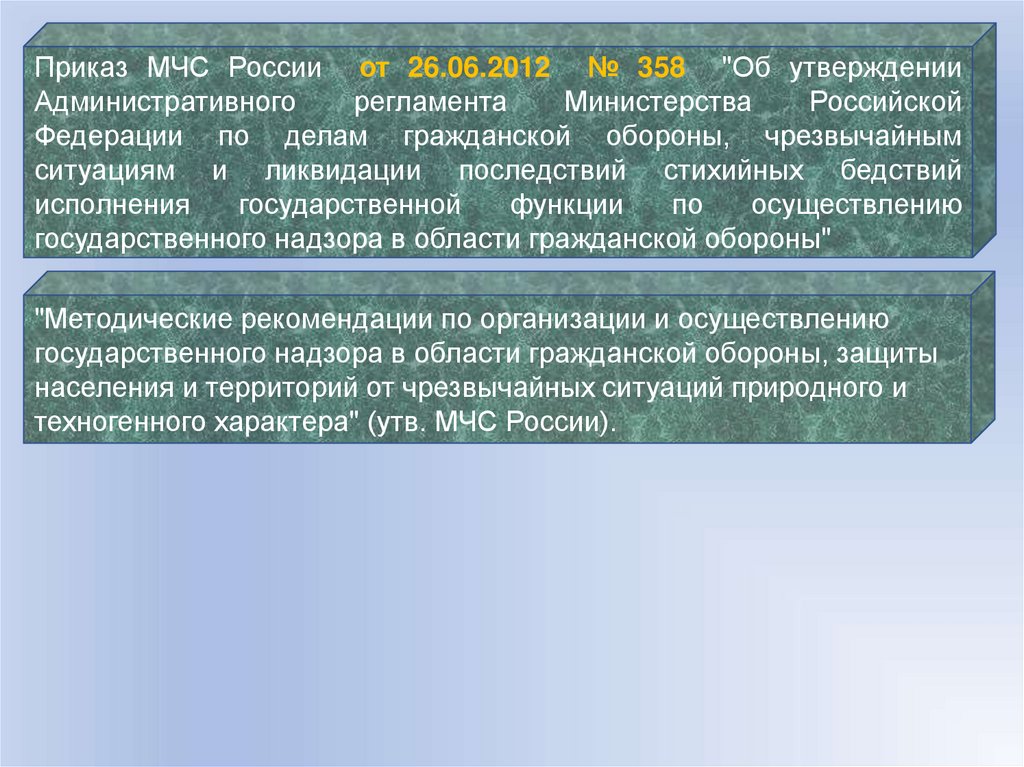 Приказ МЧС России от 26.06.2012 № 358 "Об утвержденииАдминистративного