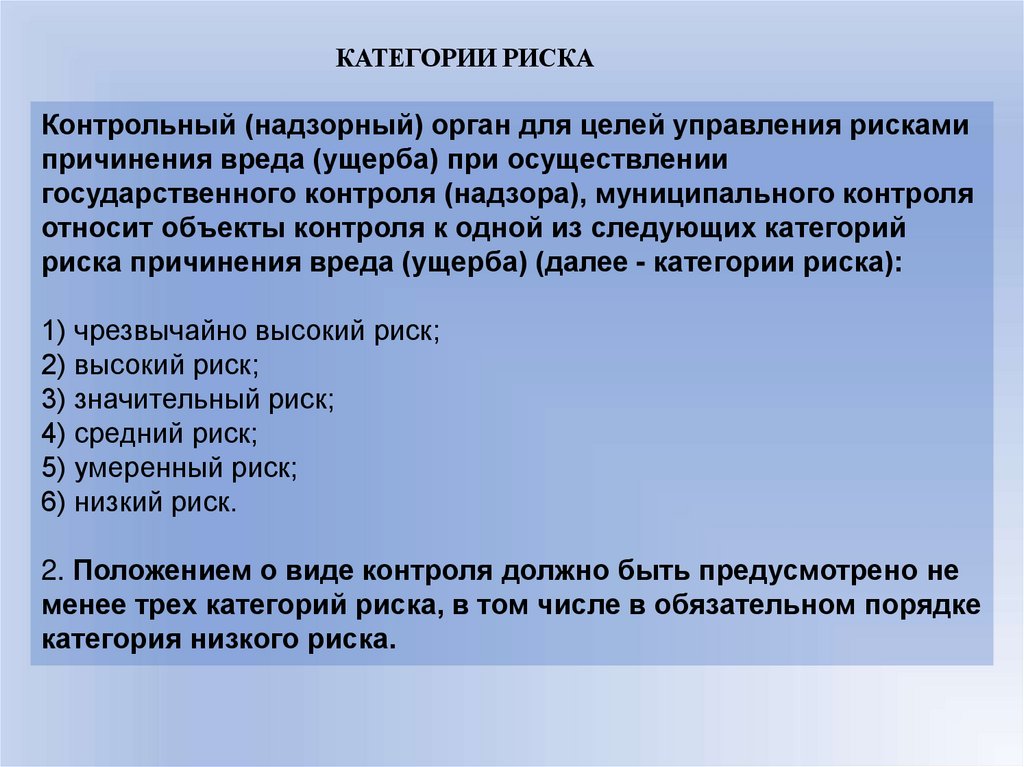 категориям значительного, среднего и низкого риска при отсутствии