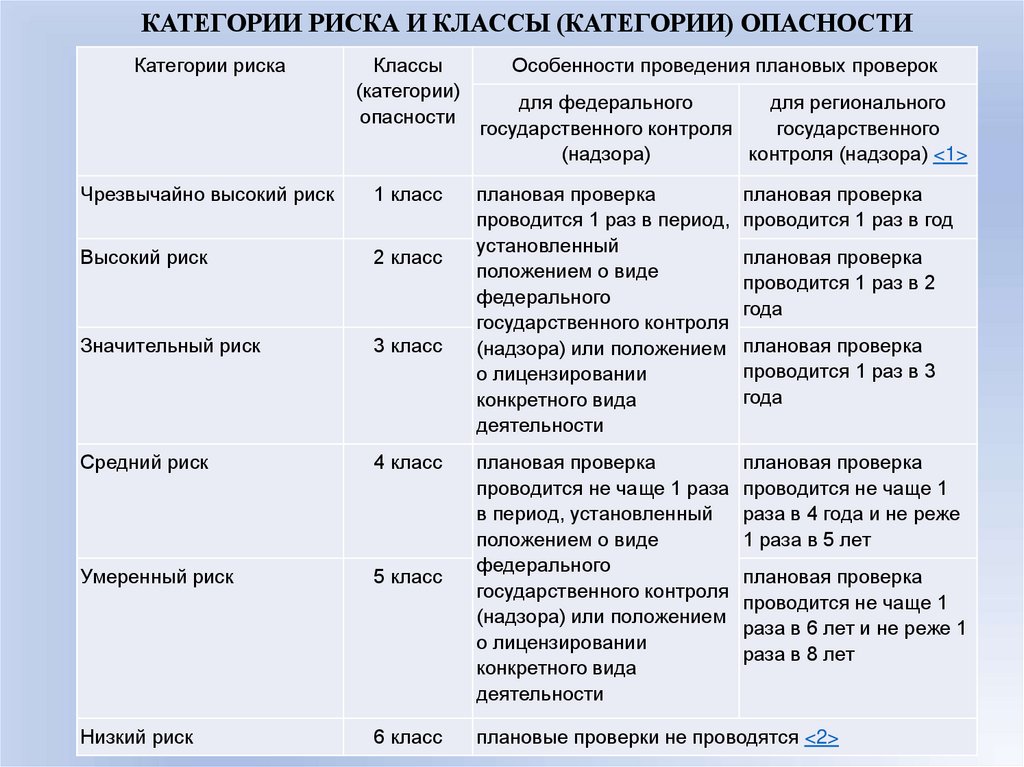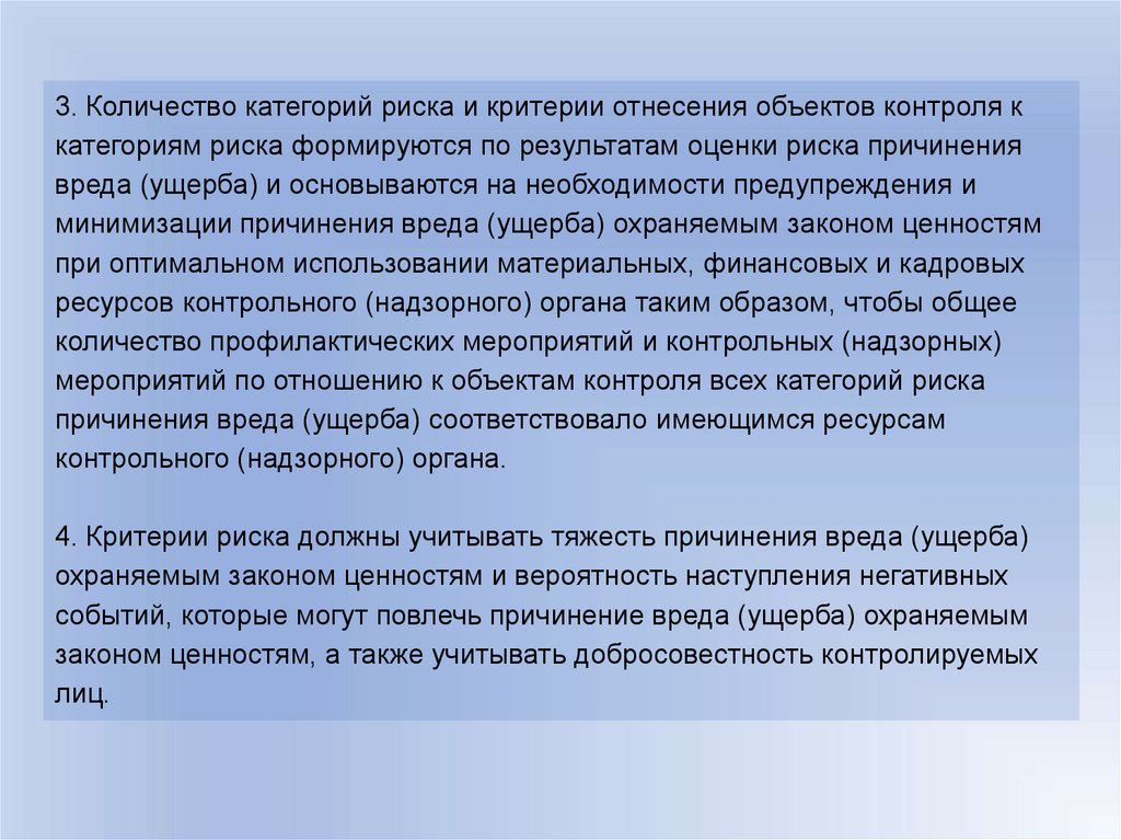 Российской Федерации установленным критериям риска независимо друг от
