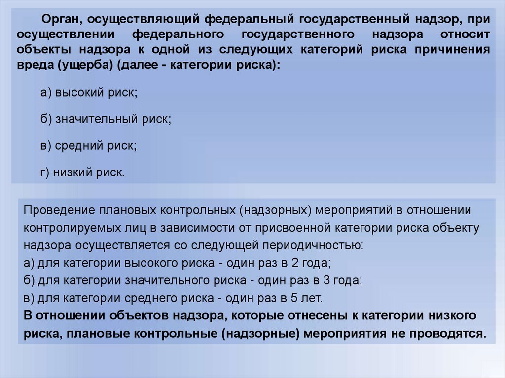 объект надзора к более высоким категориям риска.