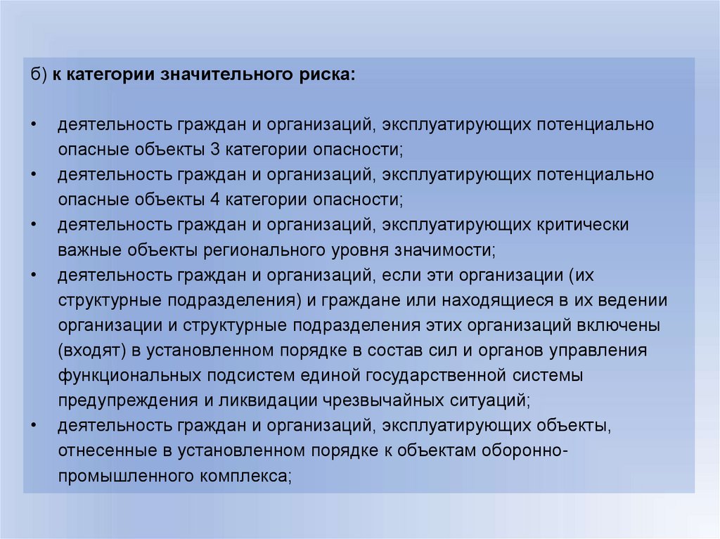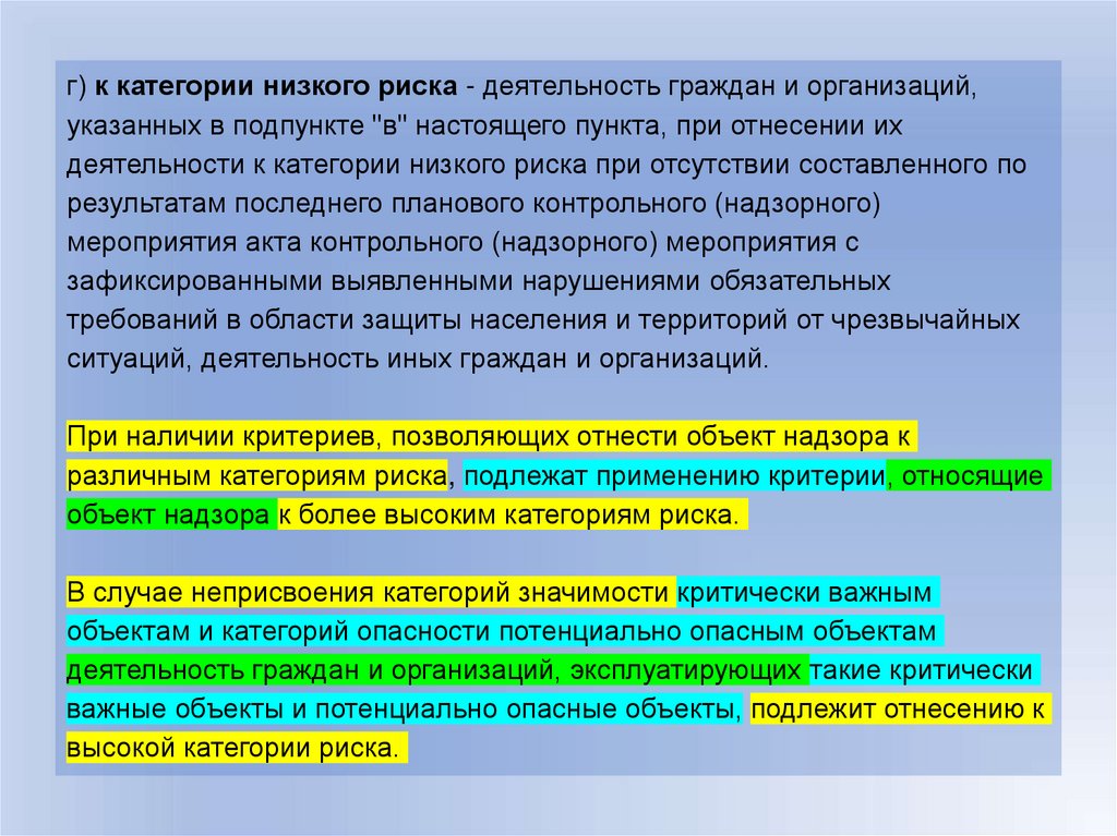 г) к категории низкого риска - деятельность граждан и организаций,указанных в подпункте "в" настоящего пункта, при отнесении их