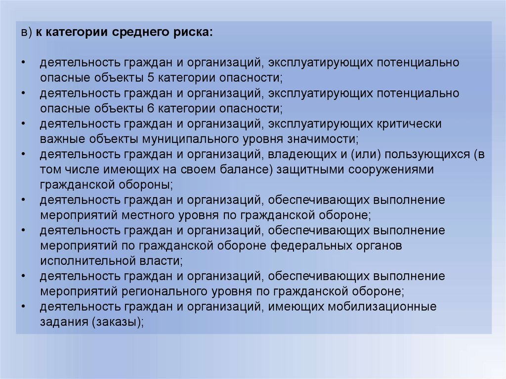 среднего и низкого риска, подлежат отнесению соответственно к