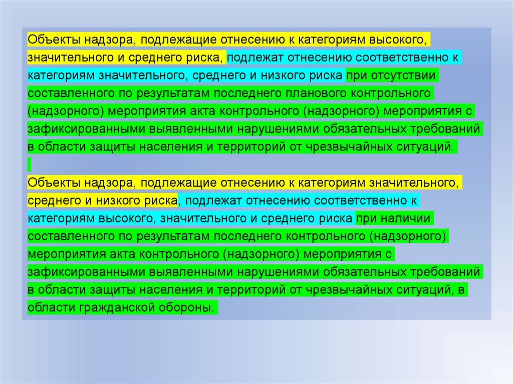 Объекты надзора, подлежащие отнесению к категориям высокого,значительного и среднего риска, подлежат отнесению соответственно к