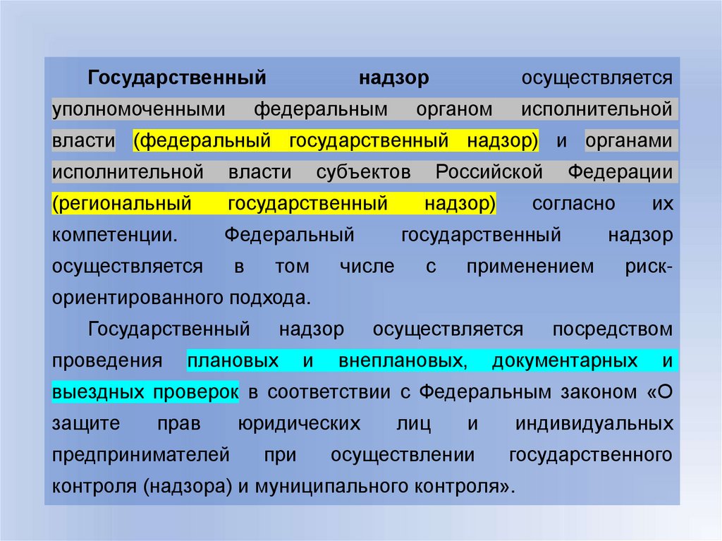 при осуществлении федерального государственного надзора в