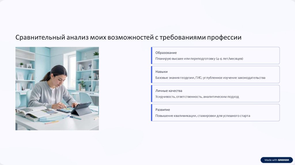 6. сравнительный анализ моих возможностей сегодня с условнями будущей профессии