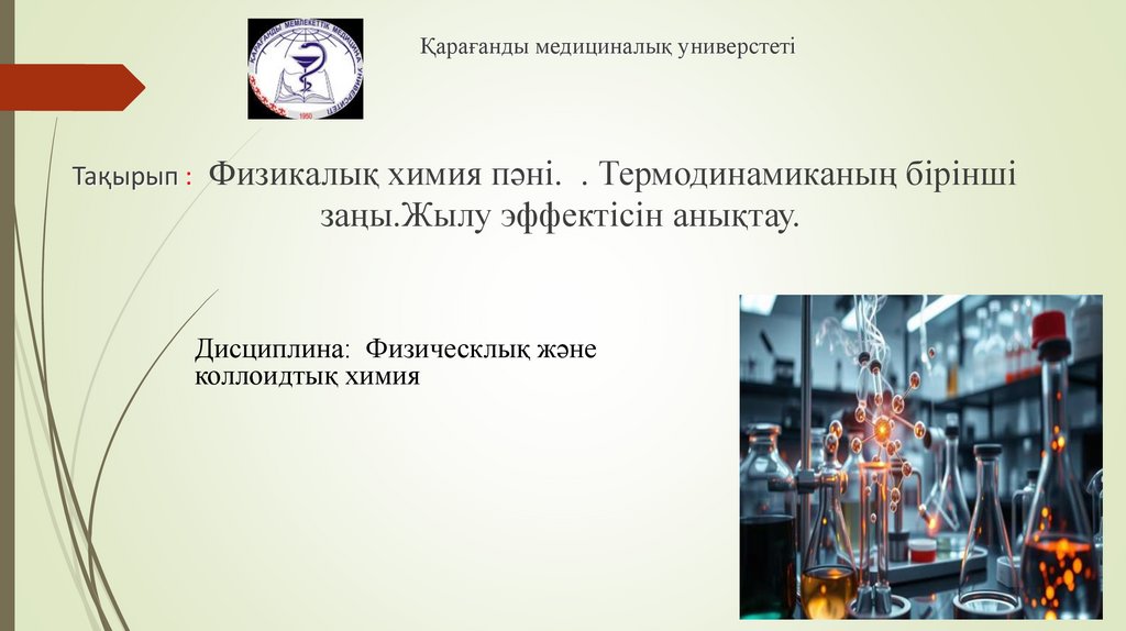 Қарағанды медициналық универстетіТақырып : Физикалық химия пәні. . Термодинамиканың бірінші