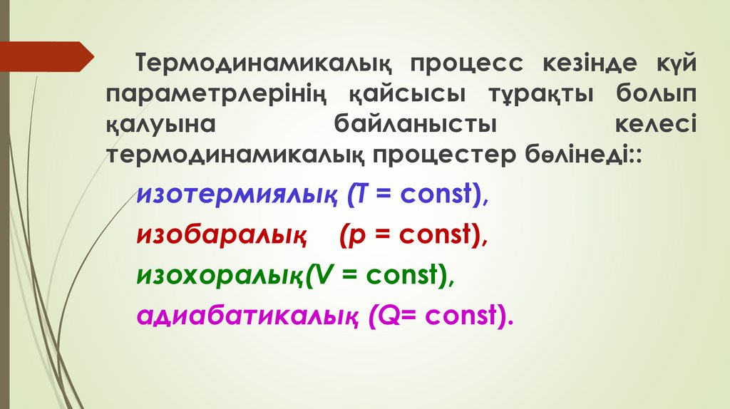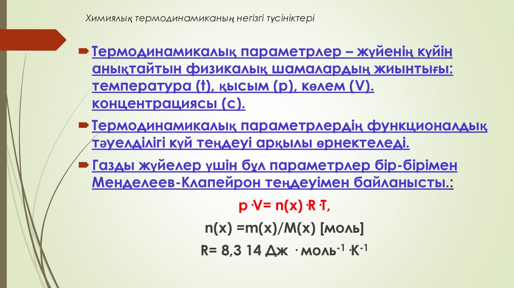 Химиялық термодинамиканың негізгі түсініктеріТермодинамикалық параметрлер – жүйенің күйін