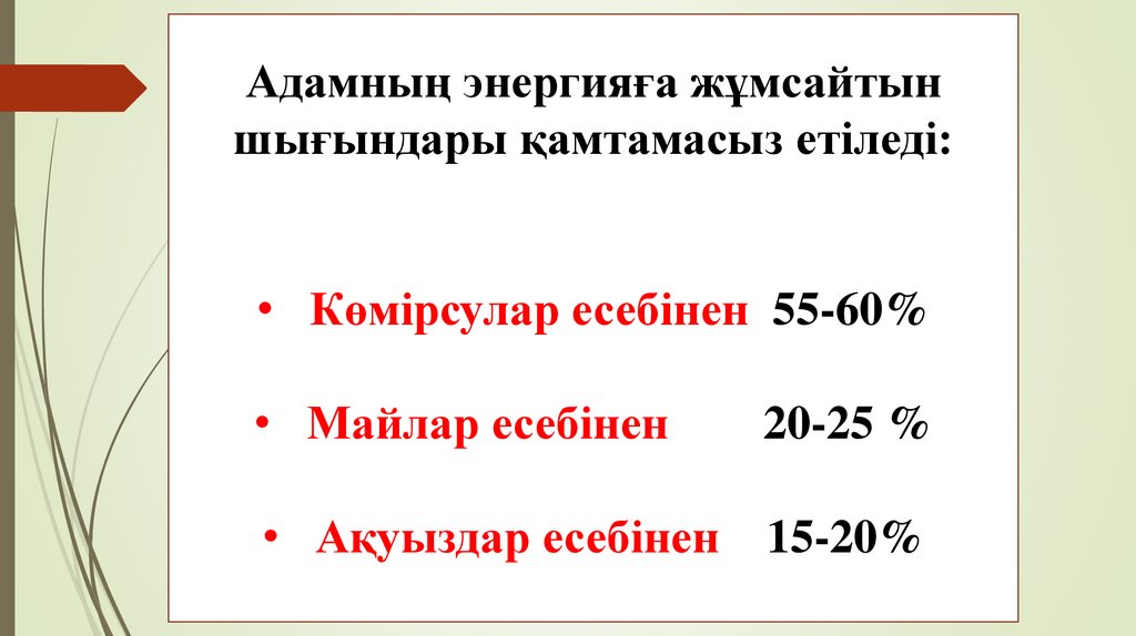 Адамның энергияға жұмсайтыншығындары қамтамасыз етіледі: