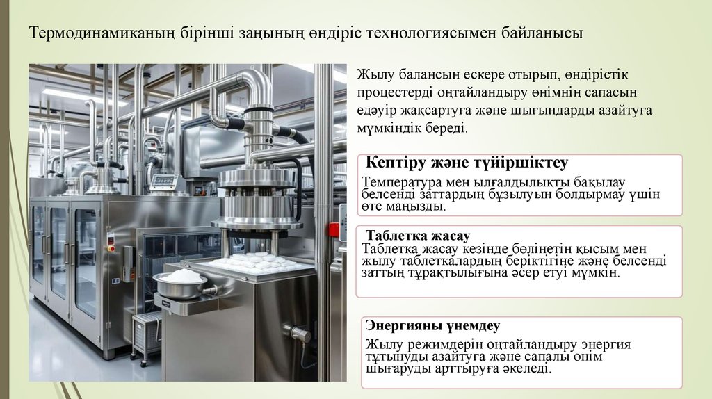 Термодинамиканың бірінші заңының өндіріс технологиясымен байланысыЖылу балансын ескере отырып, өндірістік