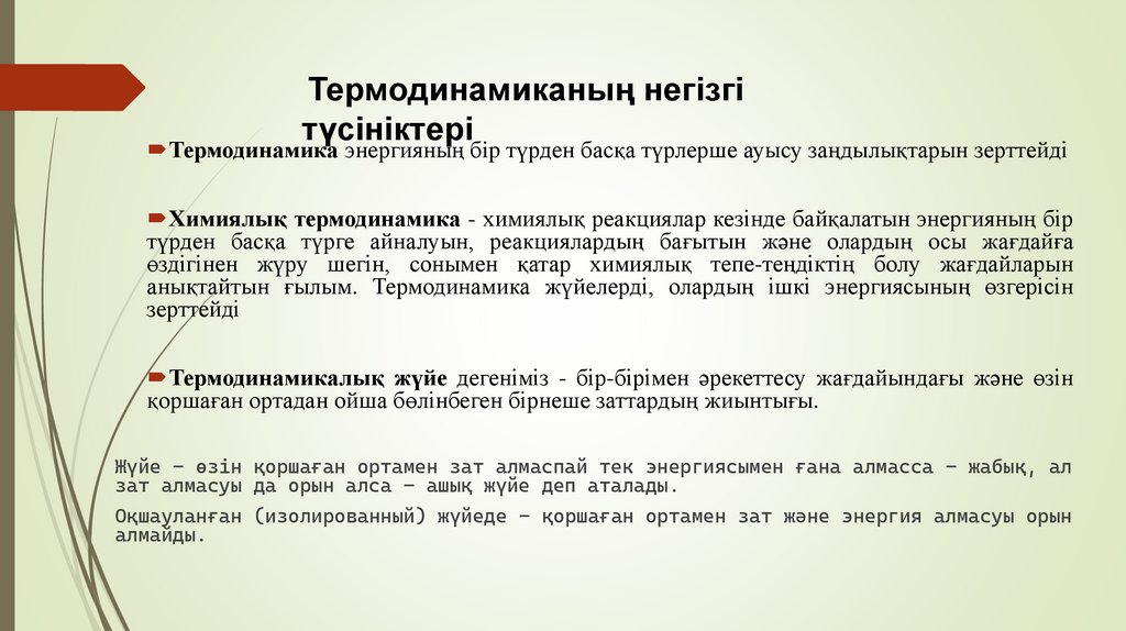 1. Физикалық химияның негіздері2. Химиялық термодинамика. Негізгі