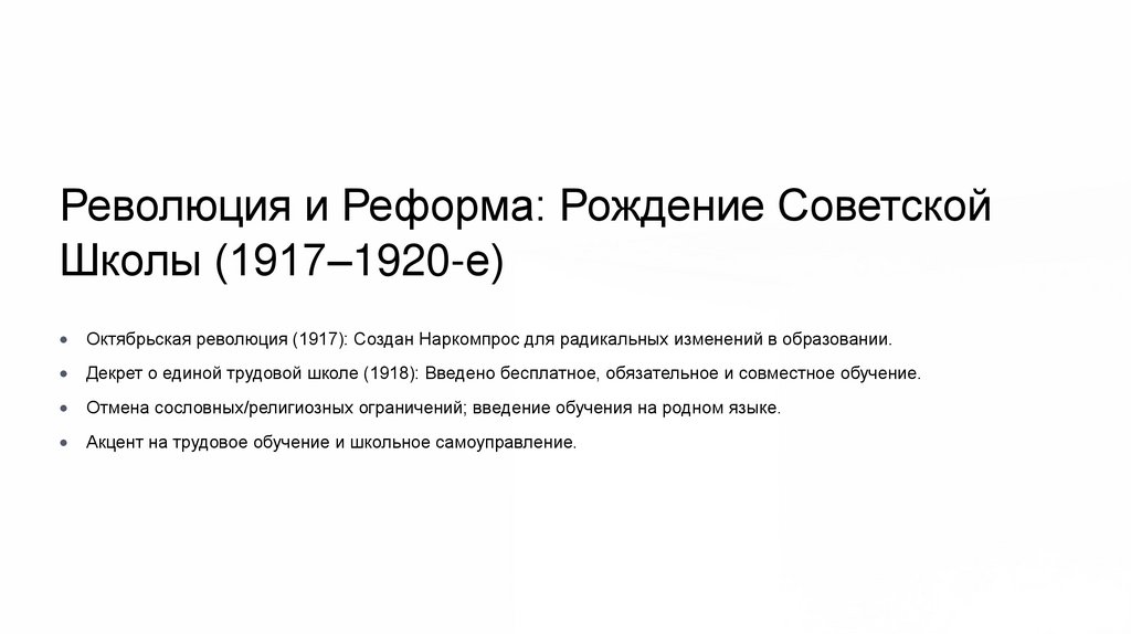Революция и Реформа: Рождение СоветскойШколы (1917–1920-е)