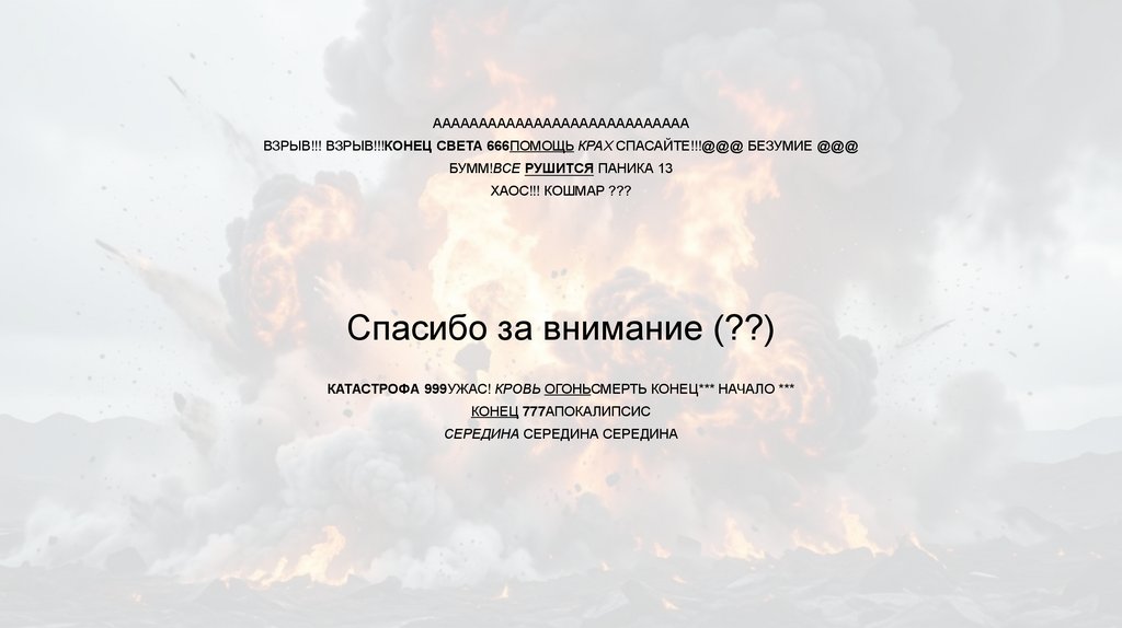 ААААААААААААААААААААААААААААВЗРЫВ!!! ВЗРЫВ!!!КОНЕЦ СВЕТА 666ПОМОЩЬ КРАХ СПАСАЙТЕ!!!@@@ БЕЗУМИЕ @@@
