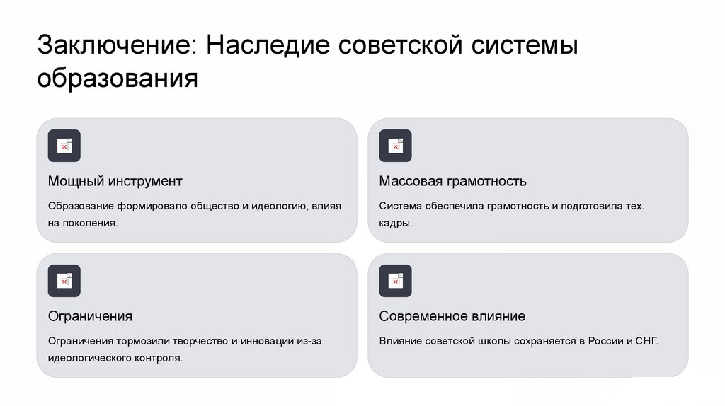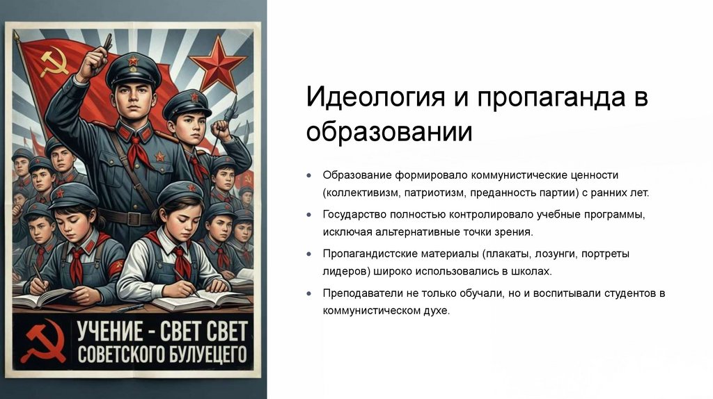 秩序和意识形态纯洁性的重视。它们共同塑造了几代苏联公民的成长经历