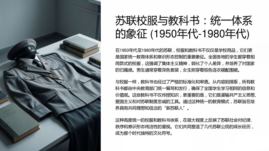 这种高度统一的校服和教科书体系 在很大程度上反映了苏联社会对纪律、