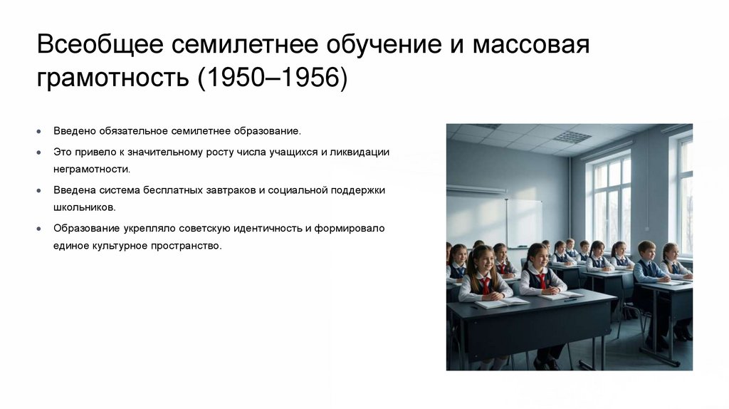 Всеобщее семилетнее обучение и массоваяграмотность (1950–1956)