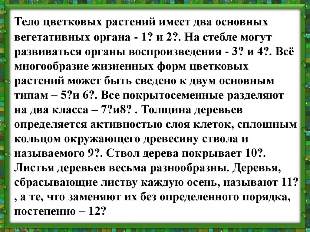 Тело цветковых растений имеет два основныхвегетативных органа - 1? и 2?. На стебле могут