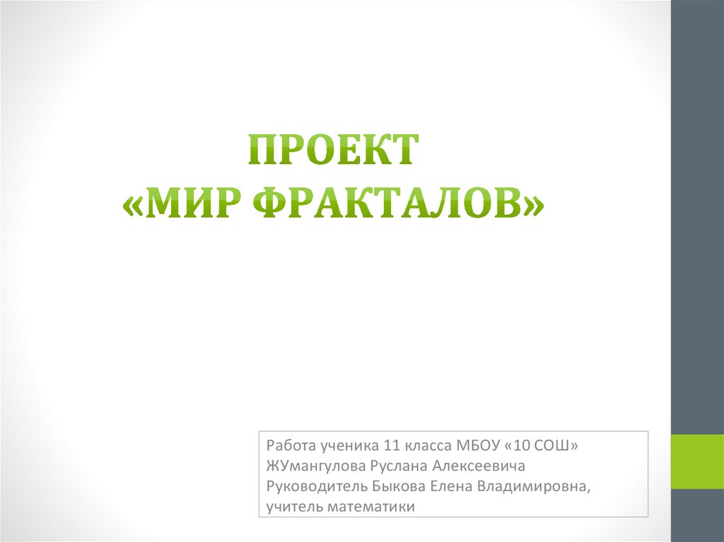 Работа ученика 11 класса МБОУ «10 СОШ»ЖУмангулова Руслана Алексеевича
