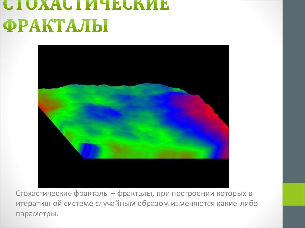 Стохастические фракталы – фракталы, при построении которых витеративной системе случайным образом изменяются какие-либо