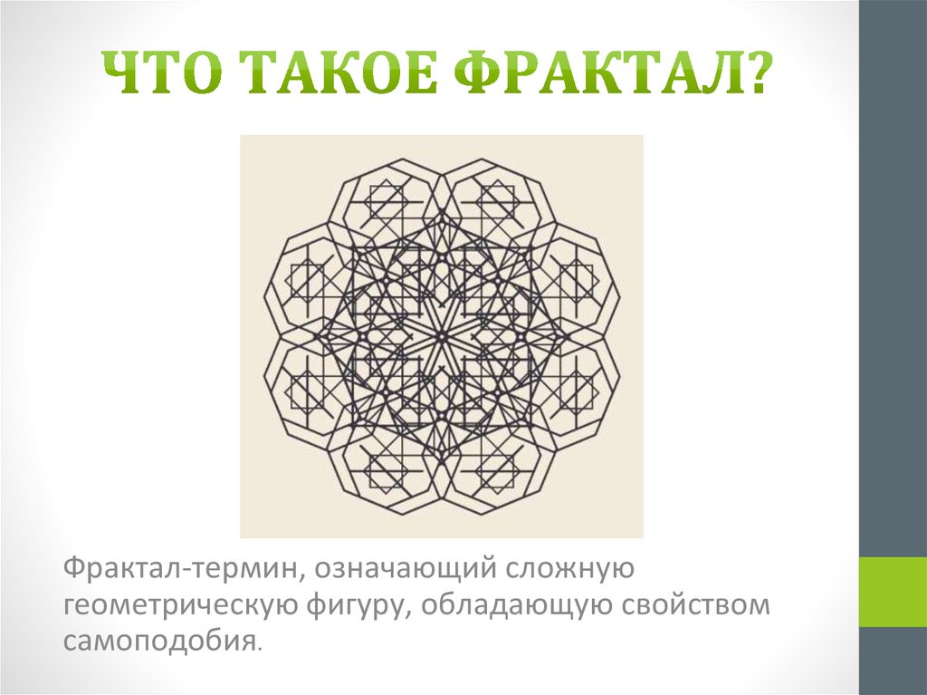 Фрактал-термин, означающий сложнуюгеометрическую фигуру, обладающую свойством