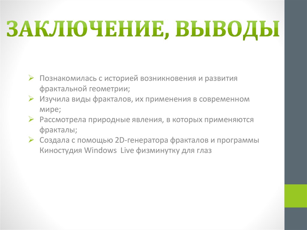 Изучила виды фракталов, их применения в современном