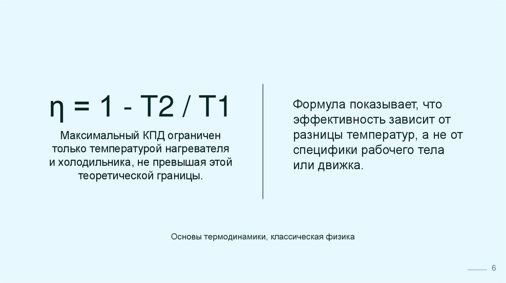 η = 1 - T2 / T1Максимальный КПД ограничен