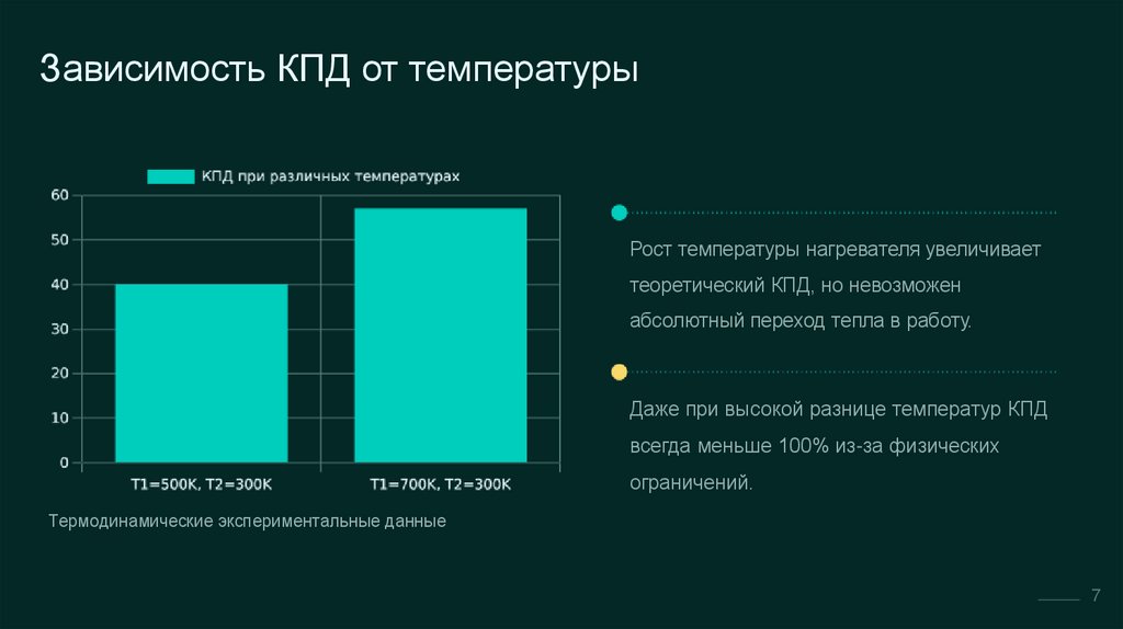 Зависимость КПД от температурыРост температуры нагревателя увеличивает