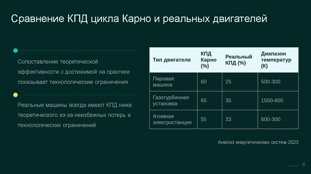 Сравнение КПД цикла Карно и реальных двигателейСопоставление теоретической