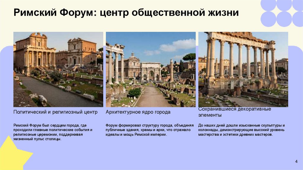 Римский Форум: центр общественной жизниПолитический и религиозный центр
