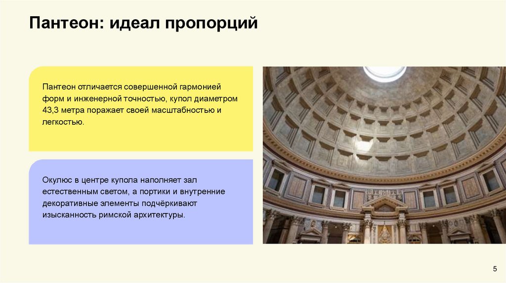 Пантеон: идеал пропорцийПантеон отличается совершенной гармонией