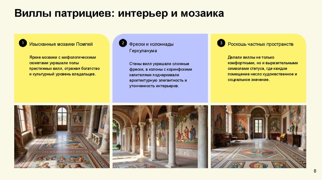 Виллы патрициев: интерьер и мозаикаИзысканные мозаики Помпей