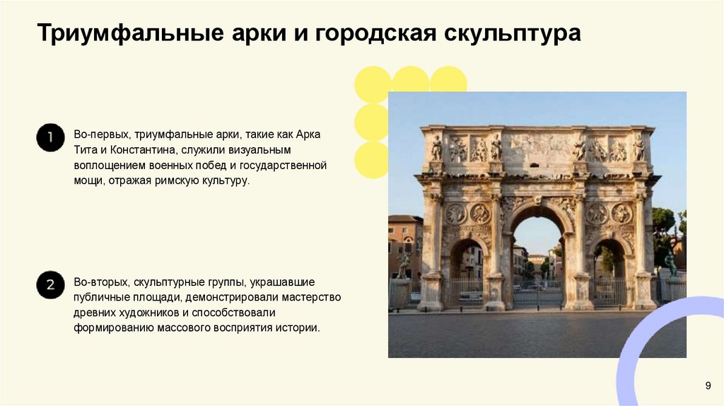 Триумфальные арки и городская скульптураВо-первых, триумфальные арки, такие как Арка
