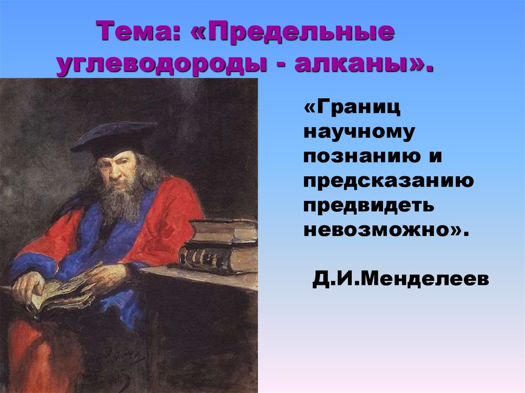 Тема: «Предельныеуглеводороды - алканы».