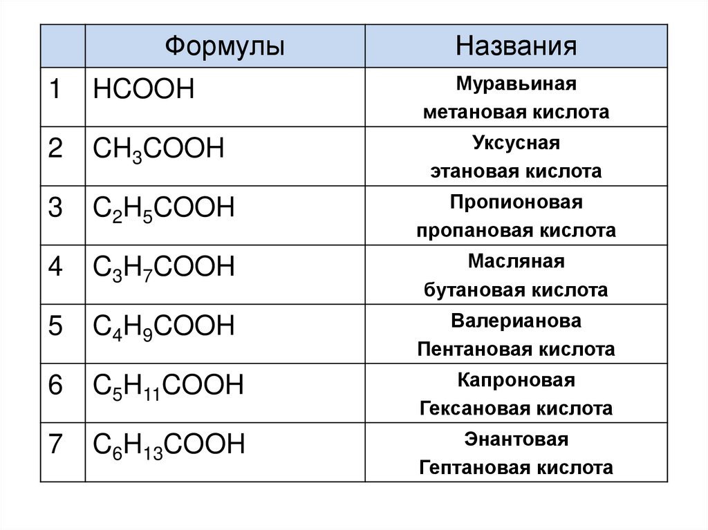 • Низшие карбоновые кислоты