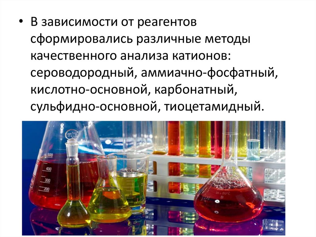 • В зависимости от реагентовсформировались различные методы