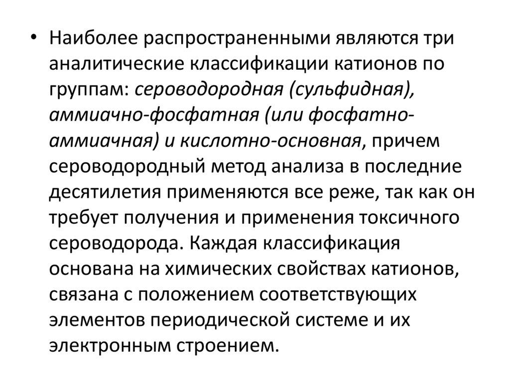• Наиболее распространенными являются трианалитические классификации катионов по