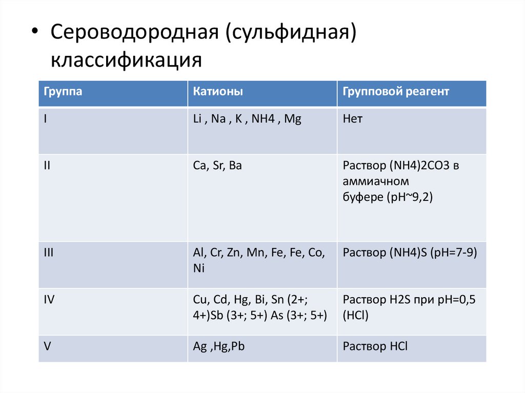 • Сероводородная (сульфидная)классификация