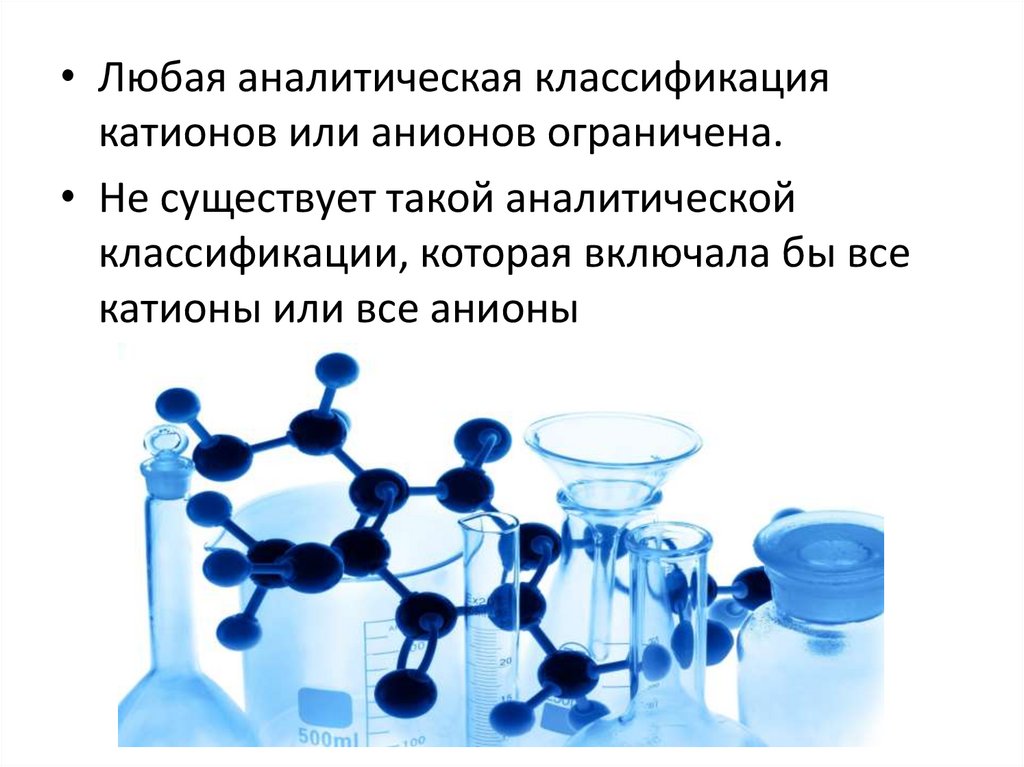 • Любая аналитическая классификациякатионов или анионов ограничена.