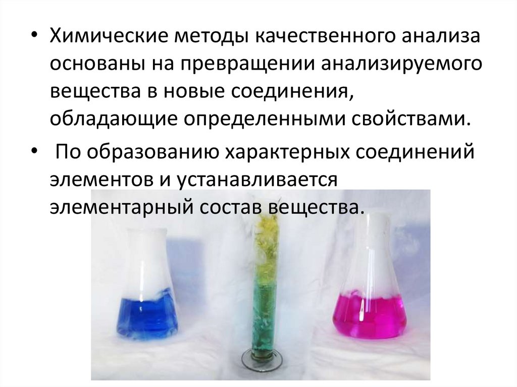 • Химические методы качественного анализаоснованы на превращении анализируемого
