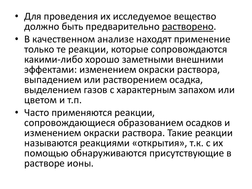 • Для проведения их исследуемое веществодолжно быть предварительно растворено.