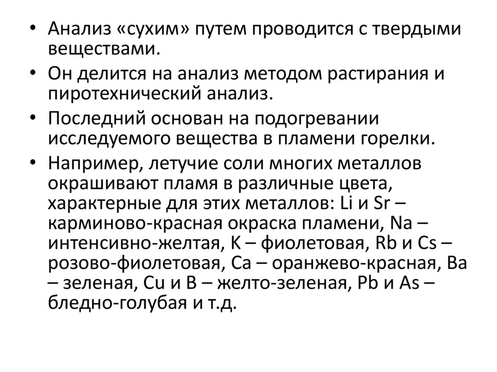 • Анализ «сухим» путем проводится с твердымивеществами.