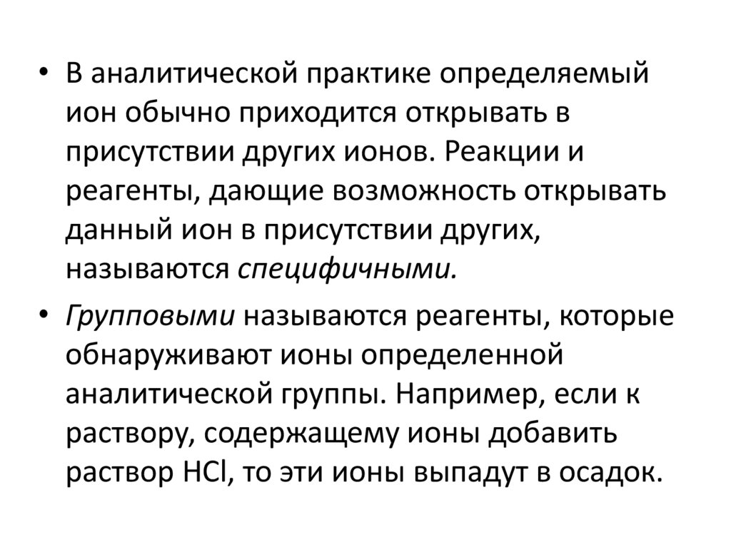 • В аналитической практике определяемыйион обычно приходится открывать в