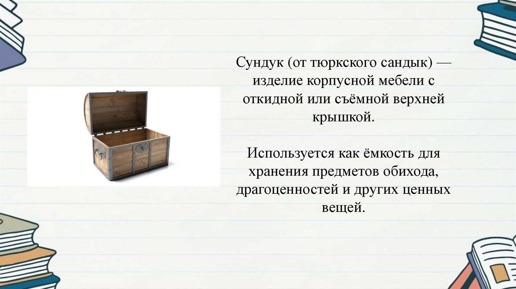 Сундук (от тюркского сандык) —изделие корпусной мебели с