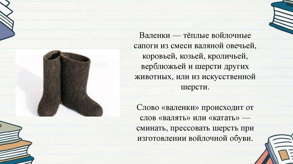 Валенки — тёплые войлочныесапоги из смеси валяной овечьей,