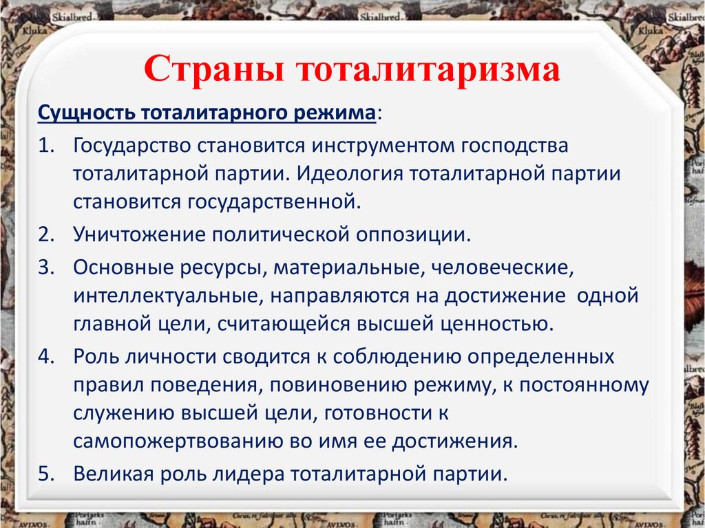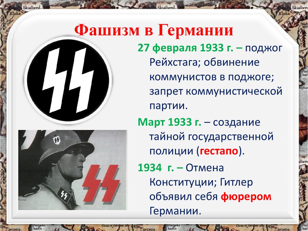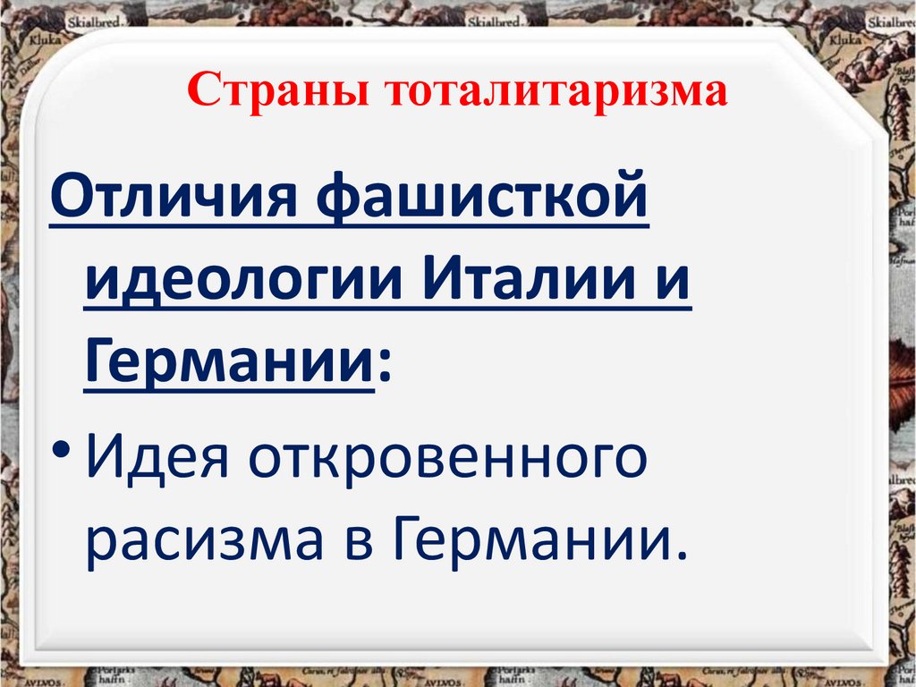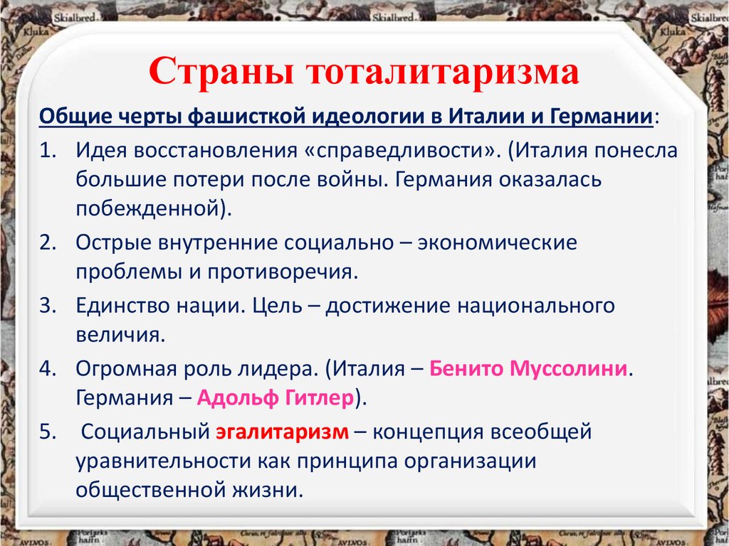 Страны тоталитаризмаОбщие черты фашисткой идеологии в Италии и Германии: