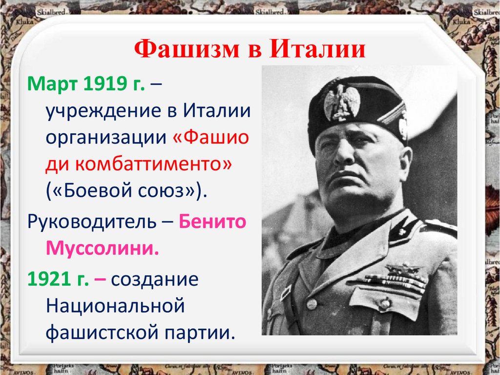 4. Огромная роль лидера. (Италия – Бенито Муссолини.