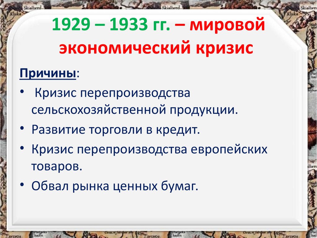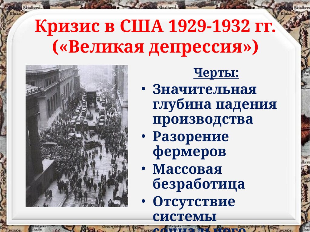 Кризис в США 1929-1932 гг.(«Великая депрессия»)