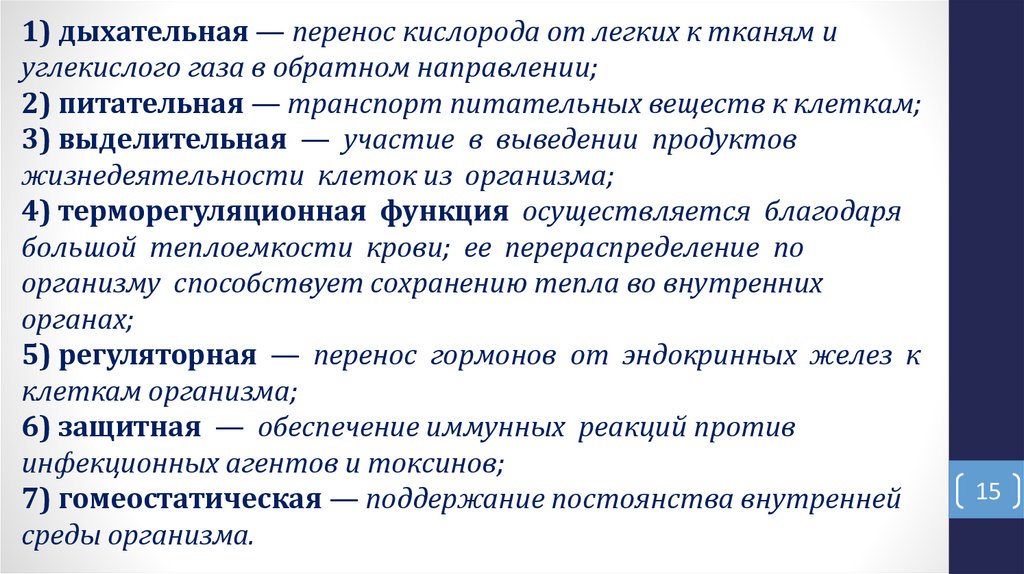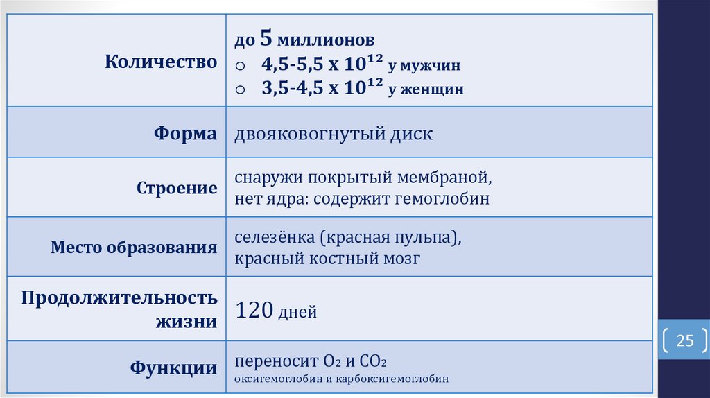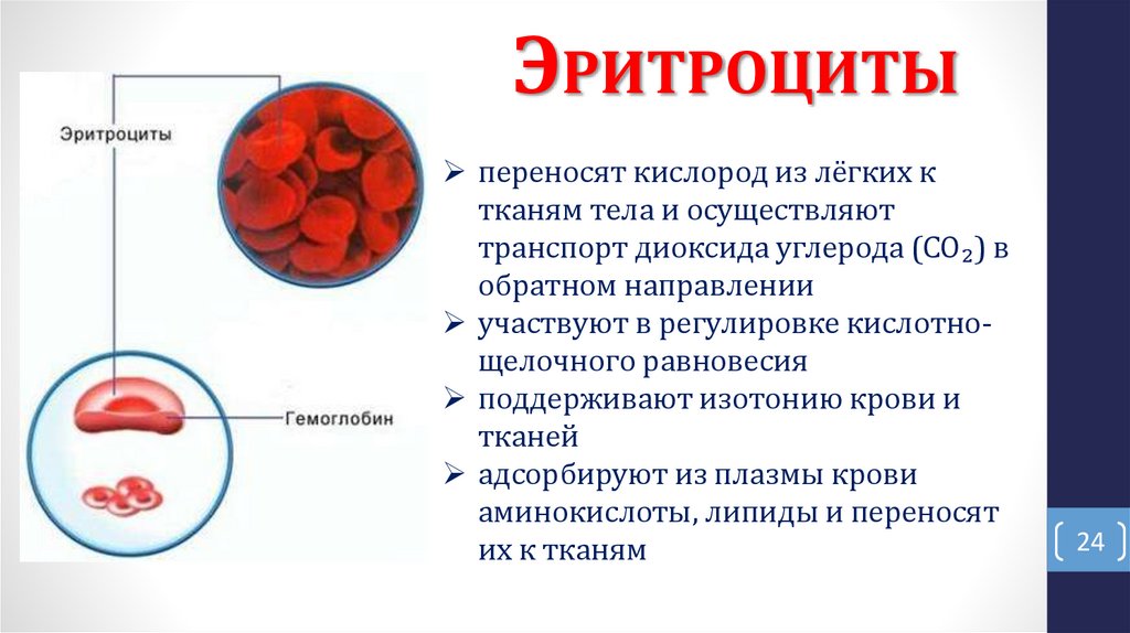 ЭРИТРОЦИТЫпереносят кислород из лёгких к