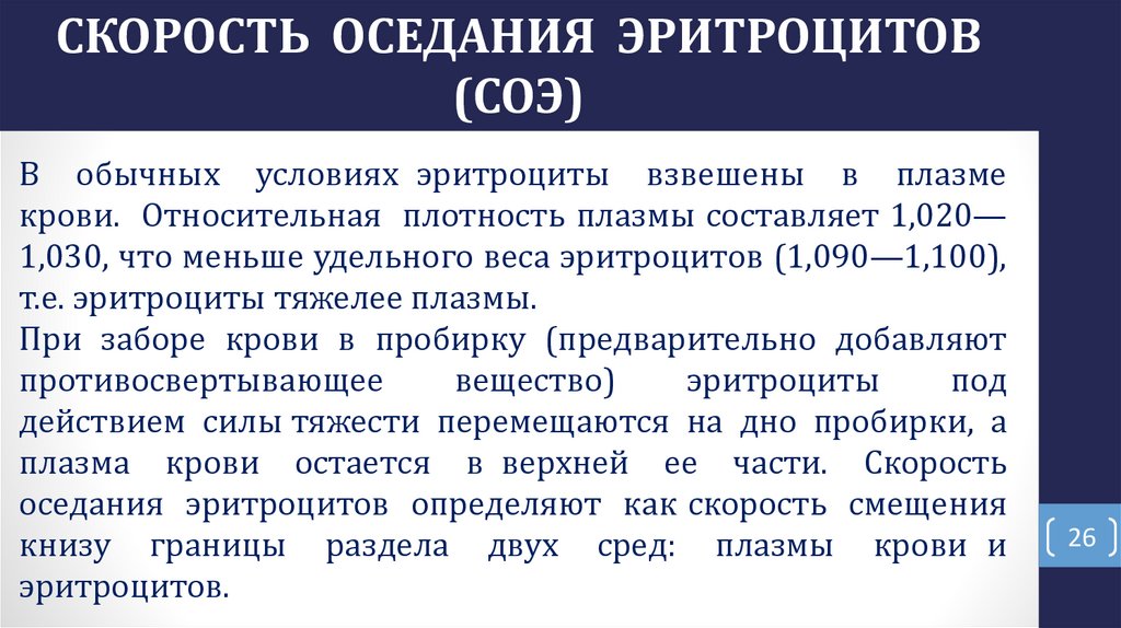 СКОРОСТЬ ОСЕДАНИЯ ЭРИТРОЦИТОВ(СОЭ)